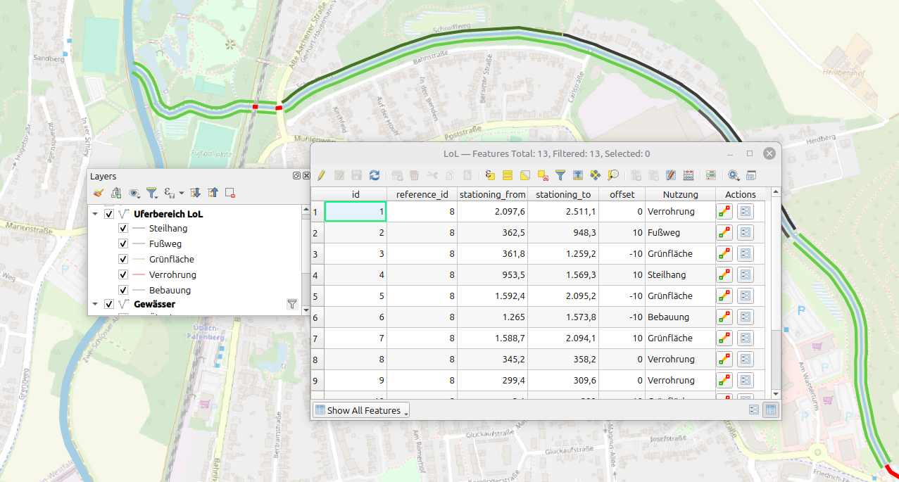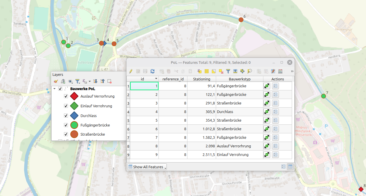 Validation-problems (f. E. stationings out of bounds, missing reference-features...) are symbolized in treeview with according hints.