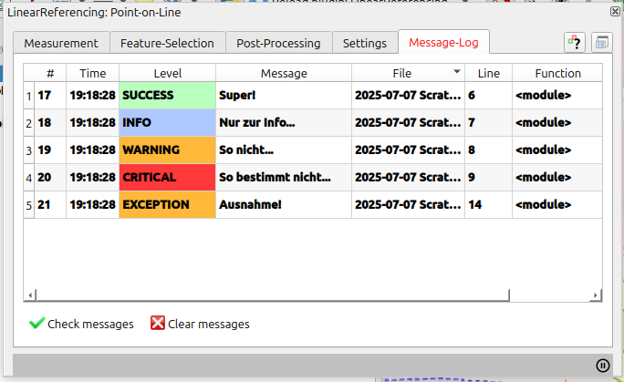 System-messages, errors, debug-metas (file/line/function/backtrace as tooltip)
